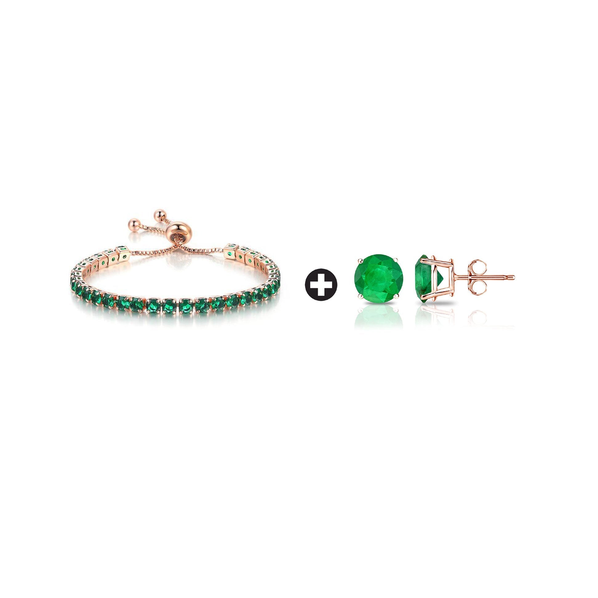 18k Rose Gold 6 Cttw Created Emerald Round Adjustable Tennis Plated Bracelet and Earrings Set