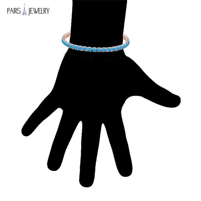 18k Rose Gold 6 Cttw Created Turquoise Round Adjustable Tennis Plated Bracelet