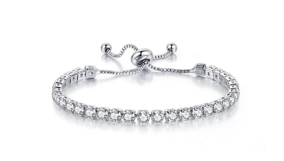 18k White Gold 8 Carat Created White Sapphire CZ Adjustable Tennis Bracelet Plated
