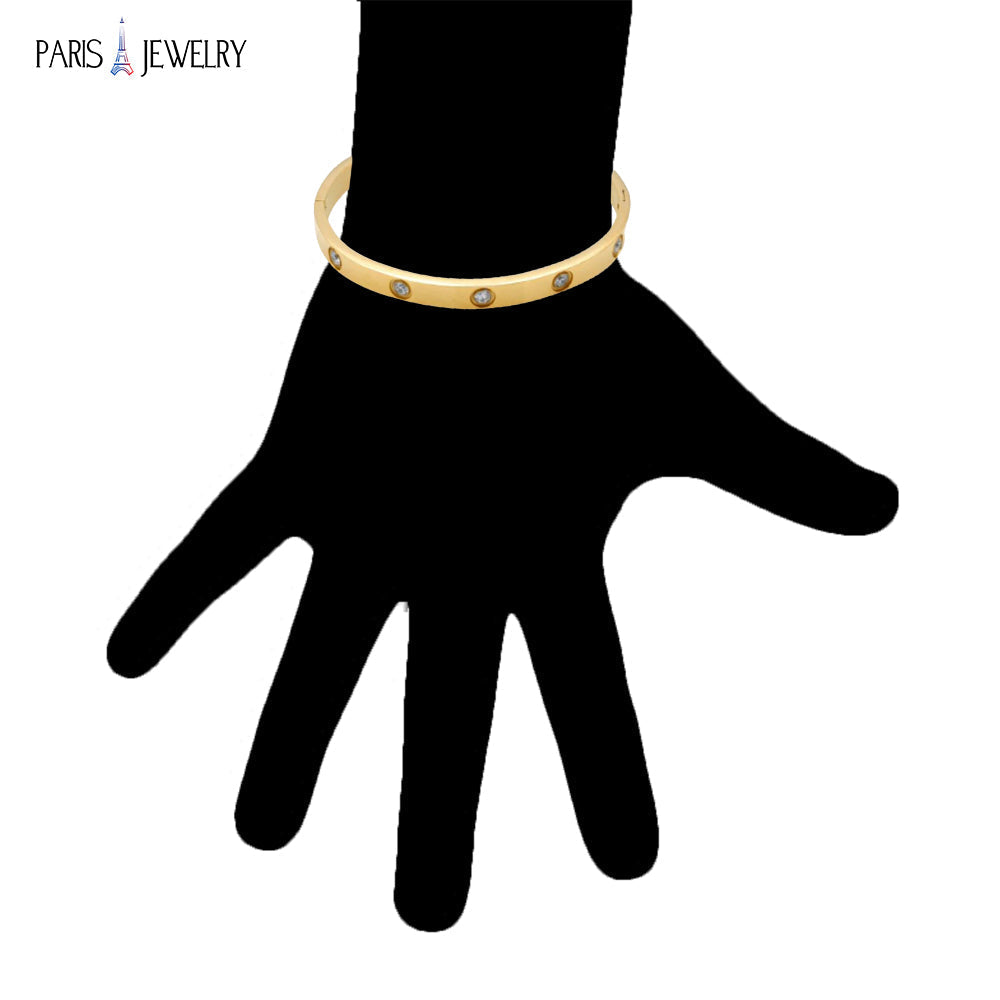 18K Yellow Gold 3 Carat Created White Sapphire CZ Bangle Cuff Bracelet Plated by PJ Jewelry Bracelet come elegantly gift boxed. This is amazing fashion style jewelry designed in France
