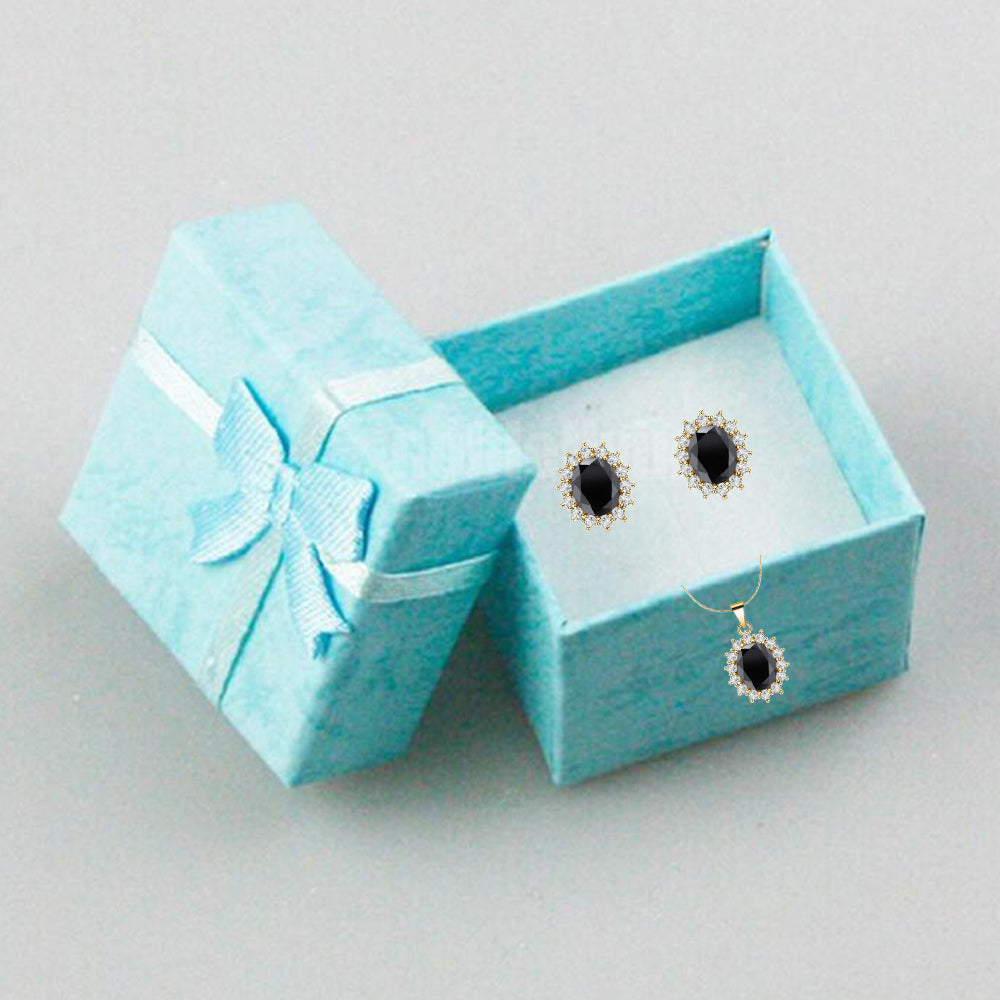 18K Yellow Gold Created Black Sapphire CZ Round 3 Carat Oval Necklace Plated 18 inch