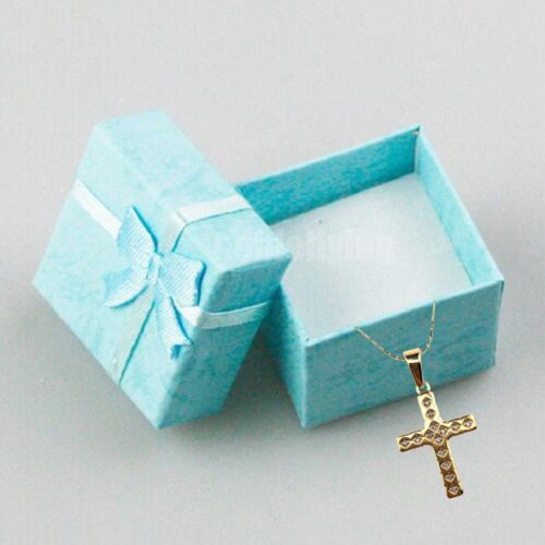 24K Yellow Gold 1 ct Created Diamond CZ Cross Stud Necklace Plated 18 inch