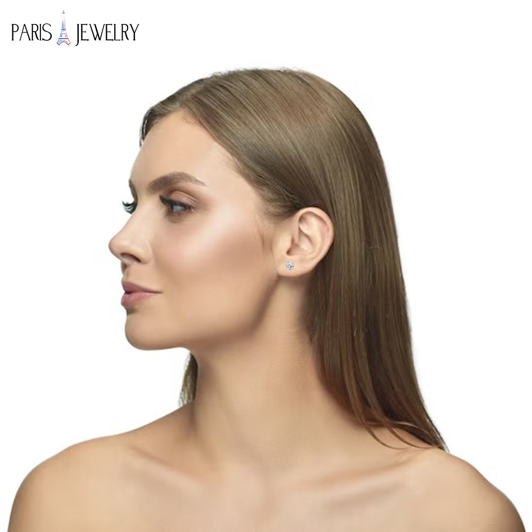 18k White Gold Plated Created White Sapphire 3Ct Round Pack of Two Stud Earrings