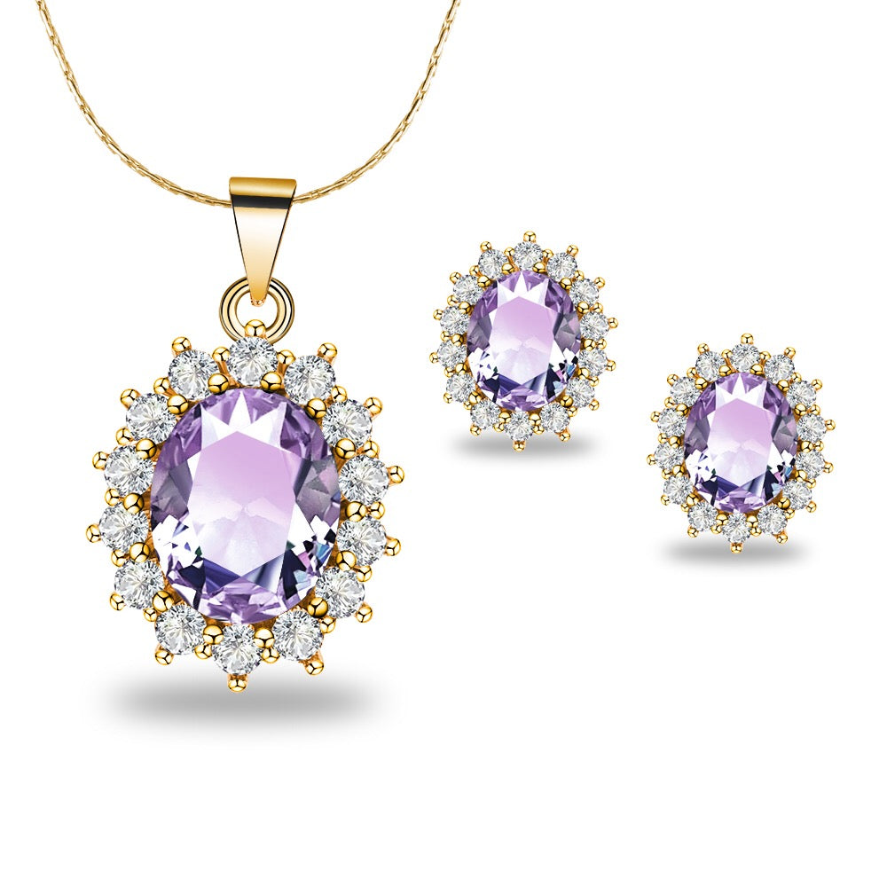 18K Yellow Gold Created Alexandrite Round 1/2 Carat Oval Necklace Plated 18 inch