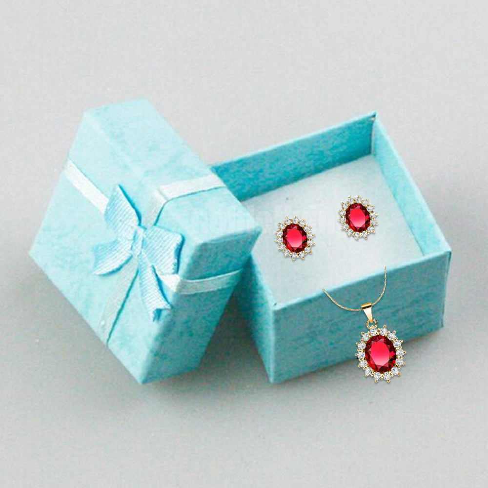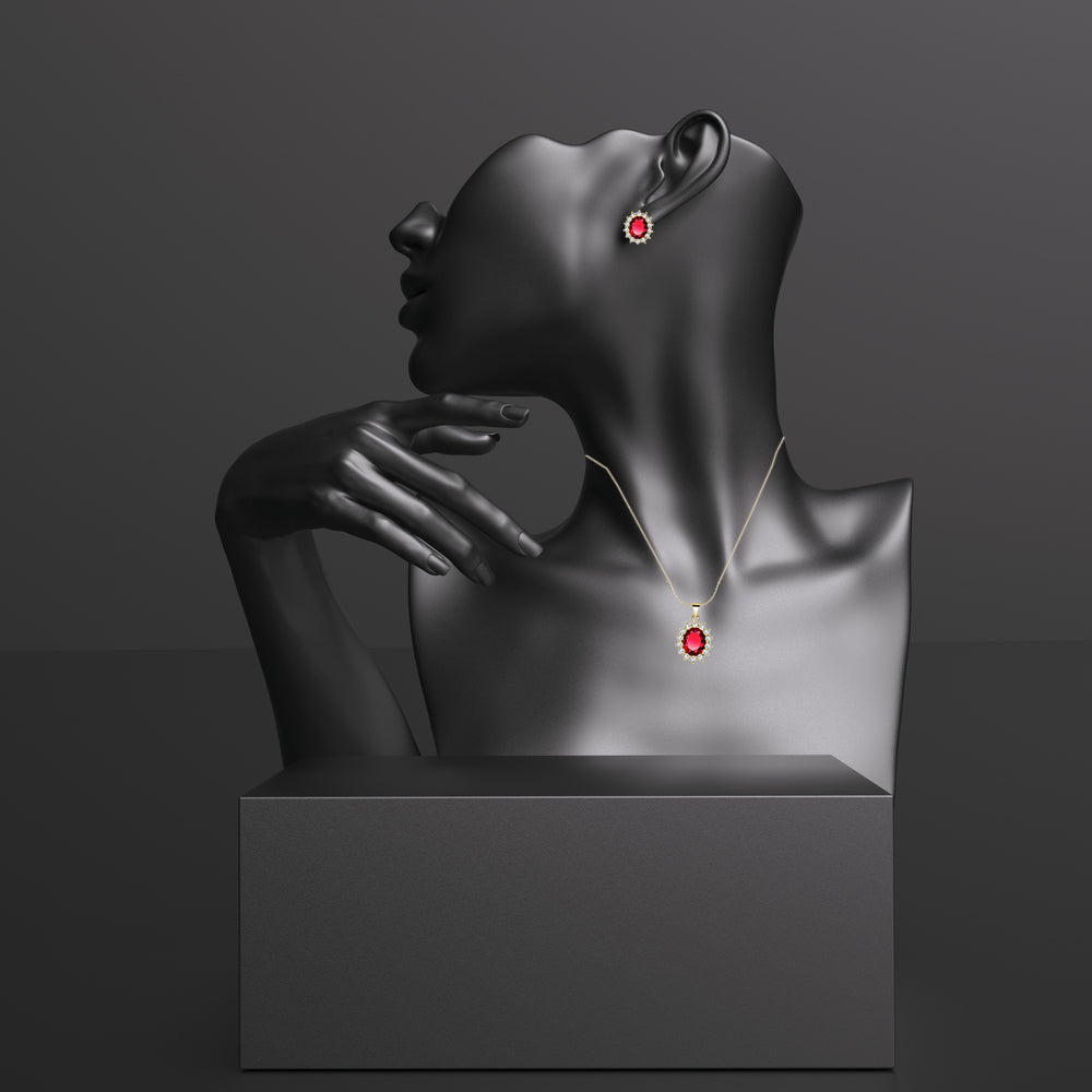 18K Yellow Gold Created Garnet CZ Round 4 Carat Oval Necklace Plated 18 inch