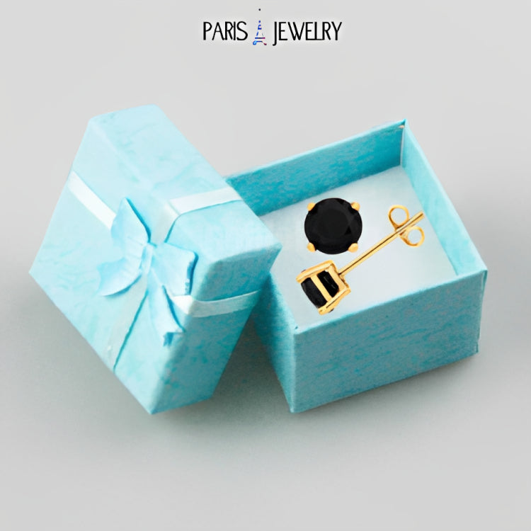 18k Yellow Gold Plated Created Black Sapphire 2 Carat Round Stud Earrings