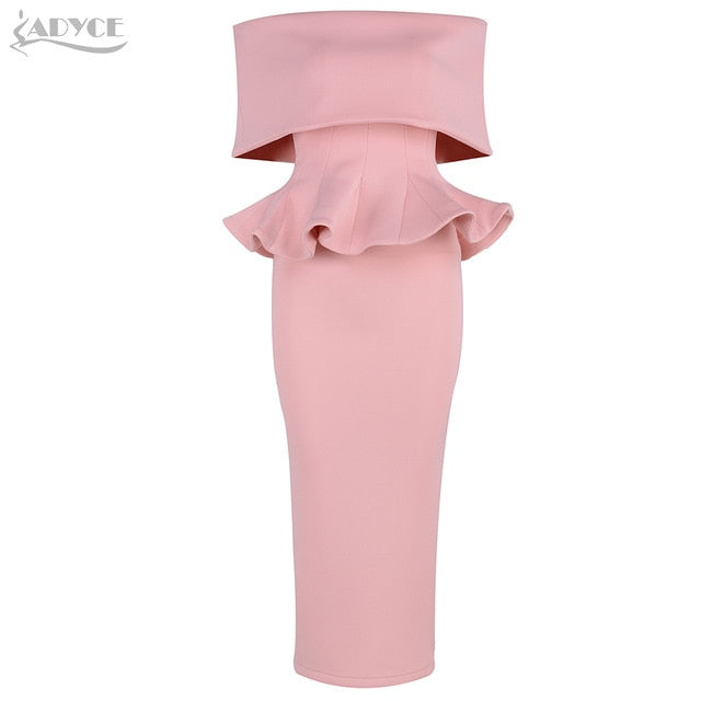 ADYCE Bow & Ruffles Ankle Length Bodycon Slash Neck Short Sleeve Party Dress - Y2008