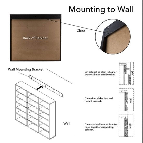 Organizing your large media collection within easy reach can be a challenge. This popular Oskar media storage cabinet design is now easily mounted wall mounted. The integrated French Cleat mounting system ensures a strong attachment that is flush to the wall. The 15 adjustable shelves let you customize the configuration to organize your movies, music and games the way you want them. Holding up to 540 CDs, 252 DVDs or 288 Blu-rays/ video games, there is room to grow. The sturdy cabinet is constructed from fully finished composite wood materials and measures 40.0" wide , 36.875" high and 6.625" deep. As your collection grows, you can add another Oskar 540 to the side of or above your original cabinet.