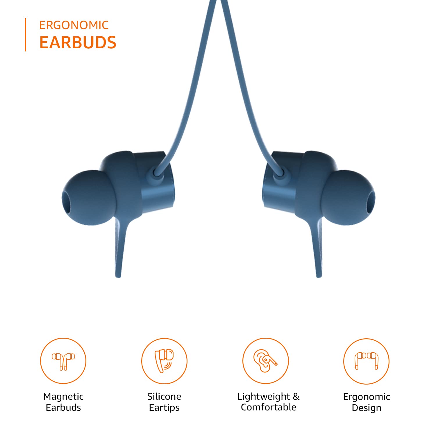 Copy of Amazon Basics Bluetooth 5.0 Neckband with Up to 30 Hours Playtime, Magnetic Earbuds, Voice Assistant, Dual Pairing and IPX6 Rated, Blue